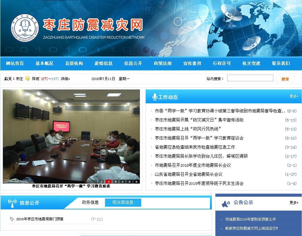 單位名稱:棗莊防震減災網