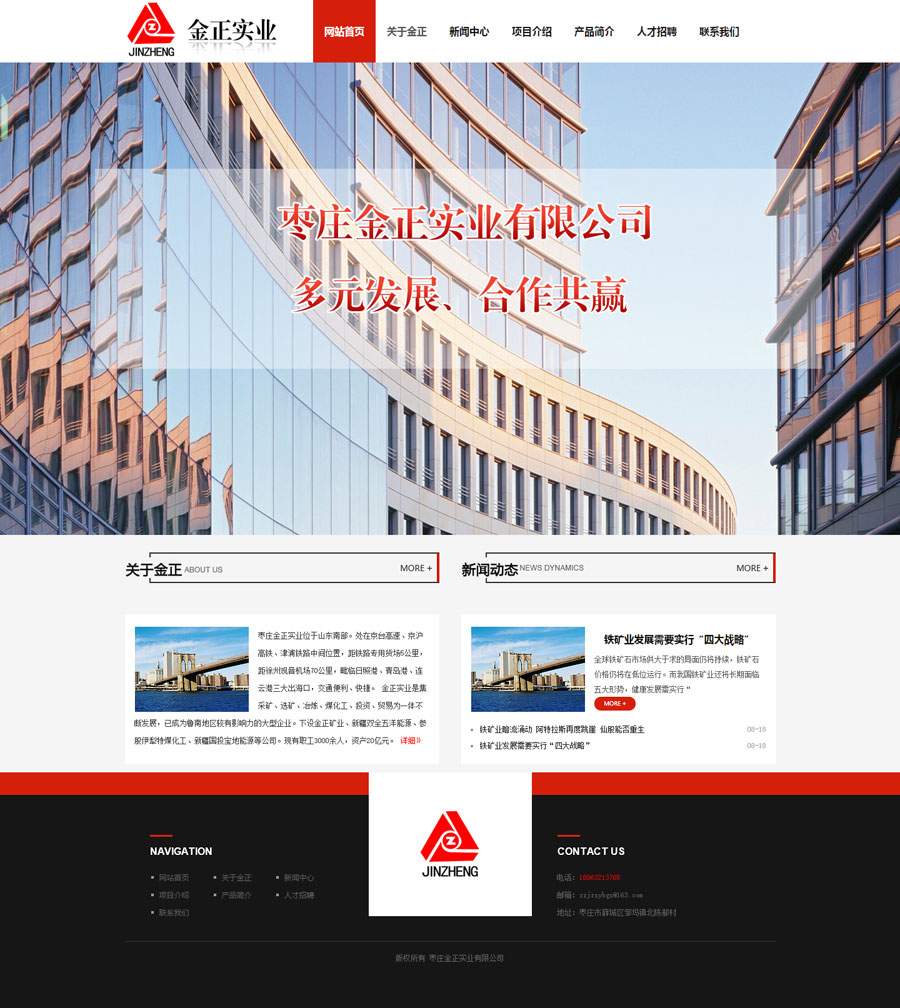 祝賀金正實(shí)業(yè)有限公司網(wǎng)站上線 訪問地址:http://www.jinzhengshiye.com/ 公司介紹: 棗莊金正實(shí)業(yè)位于山東南部。處在京臺(tái)高速、京滬高鐵、津浦鐵路中間位置,距鐵路專用貨場(chǎng)5公里,距徐州觀音機(jī)場(chǎng)70公里,毗臨日照港、青島港、連云港三大出海口,交通便利、快捷。 金正實(shí)業(yè)是集采礦、選礦、冶煉、煤化工、投資、貿(mào)易為一體不斷發(fā)展,已成為魯南地區(qū)較有影響力的大型企業(yè)。下設(shè)金正礦業(yè)、新疆雙全五洋能源、并參股伊犁特煤化工、新疆國投寶地能源等公司。現(xiàn)有職工3000余人,資產(chǎn)20億元。先后獲得棗莊百強(qiáng)企業(yè)、突出貢獻(xiàn)企業(yè)、誠信經(jīng)營企業(yè)、納稅十強(qiáng)企業(yè)、山東省工會(huì)工作先進(jìn)企業(yè)等榮譽(yù)稱號(hào)。 金正礦業(yè)年產(chǎn)鐵精粉60萬噸,金正實(shí)業(yè)年產(chǎn)鑄造用生鐵26萬噸,主要銷往江蘇、浙江、福建、安徽、河北、山東等地,深受廣大客戶好評(píng)。 公司始終秉承“多元發(fā)展、合作共贏”的經(jīng)營理念,遵循“精誠團(tuán)結(jié)、銳意進(jìn)取”的企業(yè)精神。竭誠為客戶提供優(yōu)質(zhì)的產(chǎn)品和服務(wù)。真誠歡迎各界同仁前來指導(dǎo)、合作,我們?cè)概c您風(fēng)雨同舟、攜手共創(chuàng)美好未來。 |