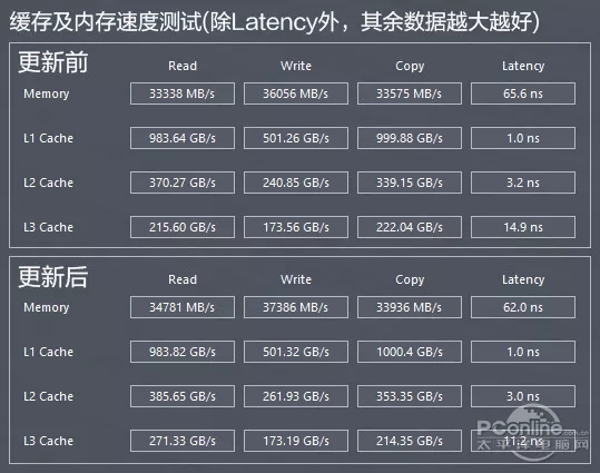 當然口說無憑,我們用一塊Intel Core i7 6700K,搭載32GB DDR4 2400內(nèi)存和一塊500GB 三星850 EVO固態(tài)硬盤進行測試,主要對比系統(tǒng)升級前后的CPU、緩存及內(nèi)存性能、固態(tài)硬盤讀寫性能的差異。